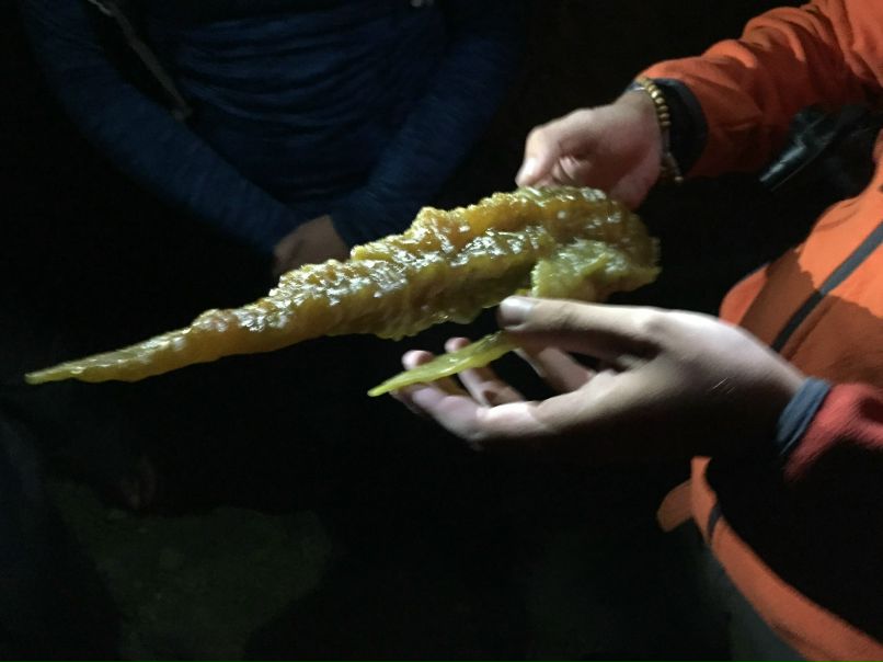 В самом кратере испытываешь ужас от того, насколько огромен сам вулкан и насколько ты здесь всего лишь маленькая песчинка. Я примерно час испытывал страх, боясь, что начнется извержение. Но человек такое существо, что ко всему привыкает, поэтому совсем скоро страх ушел. Но вот сернистый газ никуда не ушел, и мы добрались до труб. Какие-то умные люди докатились вставить трубы в те точки, откуда газ выходит из под земли. Проходя по трубам, газ охлаждается и превращается постепенно в твердую серу. Местные майнеры мало того, что обходятся без респираторов, так еще все поголовно курят сигареты в больших количествах. Мы увидели небольшую лужицу серы, которая в темноте горела синим, порадовались и пошли наверх. Потом уже с края кратера было видно еще примерно 30 секундное мерцание голубых огней и все. Затем начался рассвет, и огней больше не было.